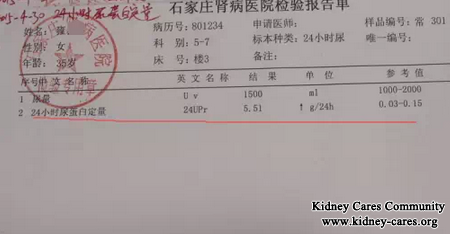 In China, there is a specialized kidney disease hospital-called Shijiazhuang Kidney Disease Hospital. Admission examination shows that 24-hour urinary protein quantity is as high as 16.04g and plasma-albumin is 19.4g/L. The doctor thinks that it is very important to control urine protein first to prevent further decrease of albumin.