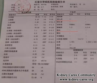She begins to seek for Chinese Medicine Treatment so she comes to our hospital-Shijiazhuang Kidney Disease Hospital which is specialized in kidney disease with 30 years of clinical experience and has treated more than 60 countries patients. Her urine protein has become 4+ and urine occult is 2+. Western medicines has not worked on me so I want to have a try of Chinese Medicine.