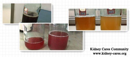After taking about 13 days’ systematic treatment, we can see great changes in her urine, from black to red, then to yellow. We can even see the discharge of immune complexes from her urine.